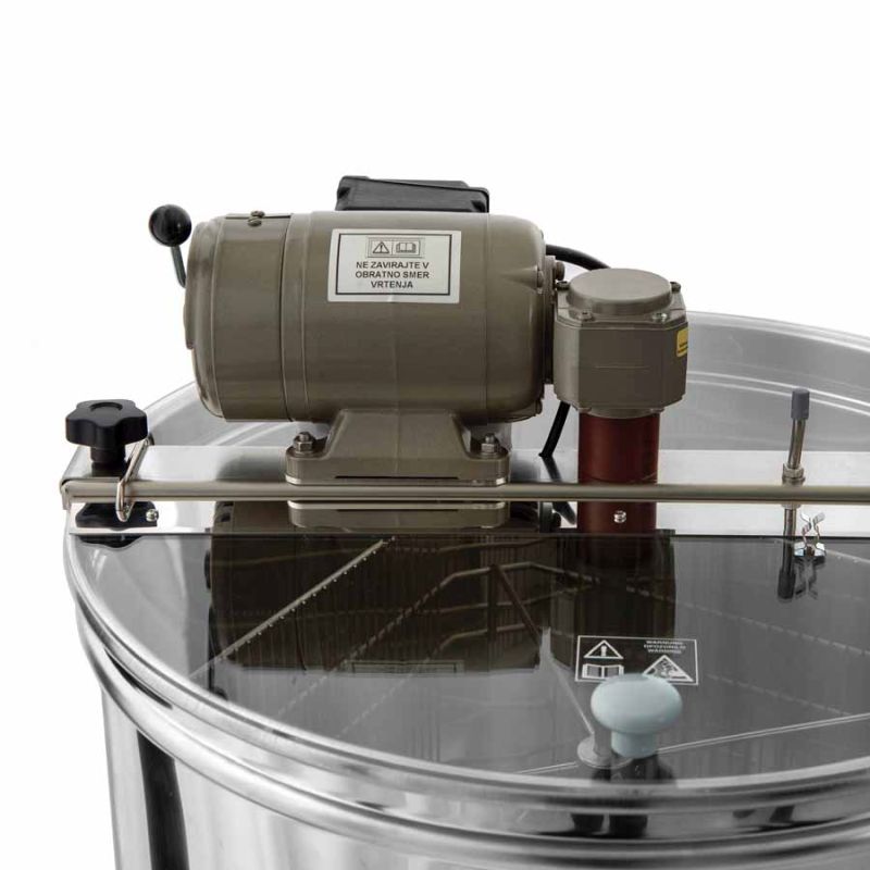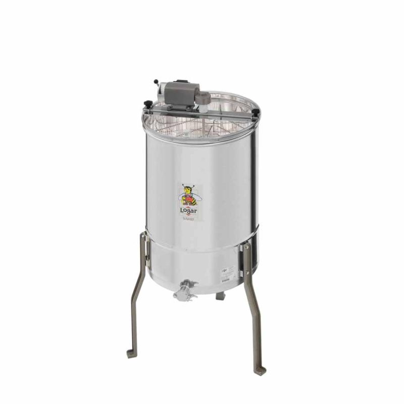 Logar 3-frame honey extractor with 110 W / 230 V motor drive. The extractor is equipped with an integrated safety switch that automatically stops the motor when the lid is opened. The stainless-steel honey tap is welded at the lowest possible point so that all honey can drain from the extractor. All parts that come into contact with honey are made from food-grade materials.