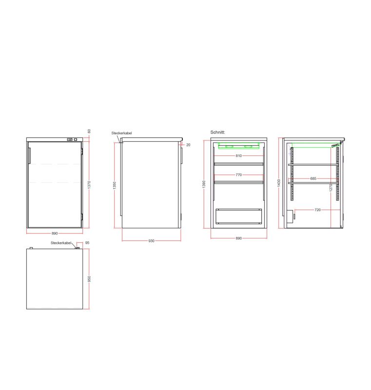 - Minimal heat loss and energy savings due to well-insulated walls and fully opening doors with magnetic seals.