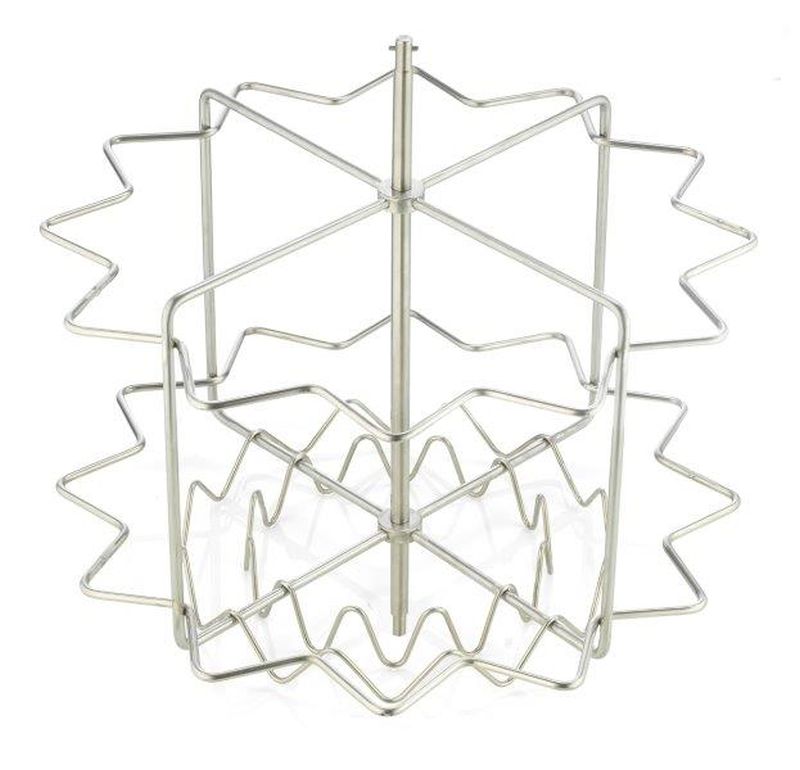 • The radial basket can easily be converted into a tangential basket by inserting four additional hanger grids for tangential operation (Art. No. 7761), allowing you to extract four large frames up to 30 cm high. In this configuration you can hang a cappings bag (Art. No. 7758) inside the basket so honey can drain easily from the cappings.