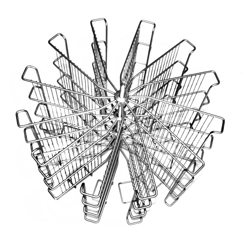 Der Schleuderkorb ist so gebaut, dass sich das Rähmchen beim Drehen an das Einhängegitter lehnt, womit die Beschädigung des Rähmchens verhindert wird.