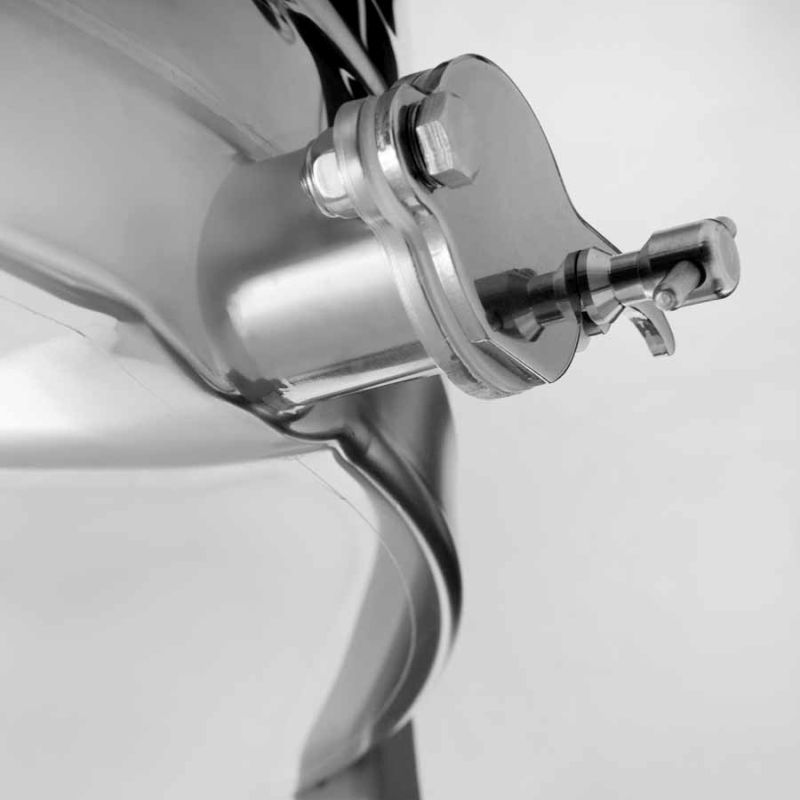 Die Honigschleuder hat zwei rostfreie Quetschhähne. Einer ist am tiefst möglichen Bodenpunkt eingebaut, was gewährleistet, dass der gesamte Honig aus der Honigschleuder abfließen kann.